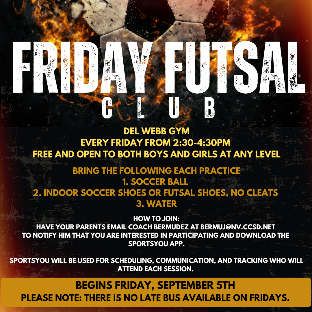 Have your parents email Coach Bermudez at bermuj@nv.ccsd.net to let him know you are interested in participating and download the SportsYou app.